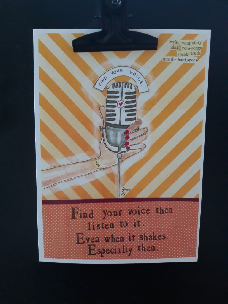 In 2021, I’ll be exploring my voice. A card caught my attention at a store recently. It “spoke” to me and I hope it will provide me with direction as I write.