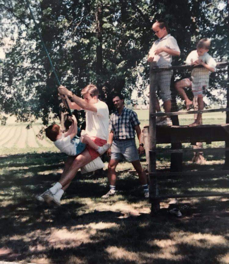 Tom & Jeff on the bag swing at the farm in Sheffield, Iowa / Jeff with Nate & Daniel