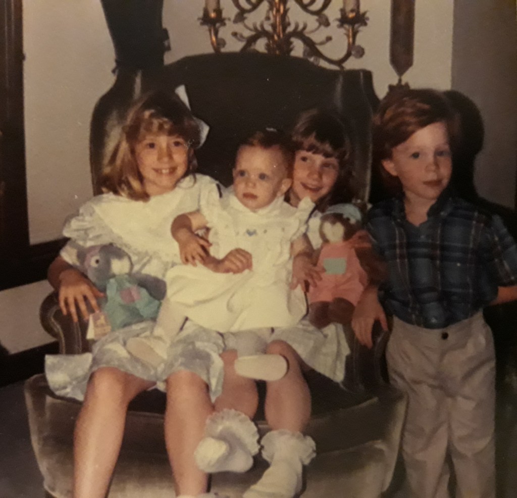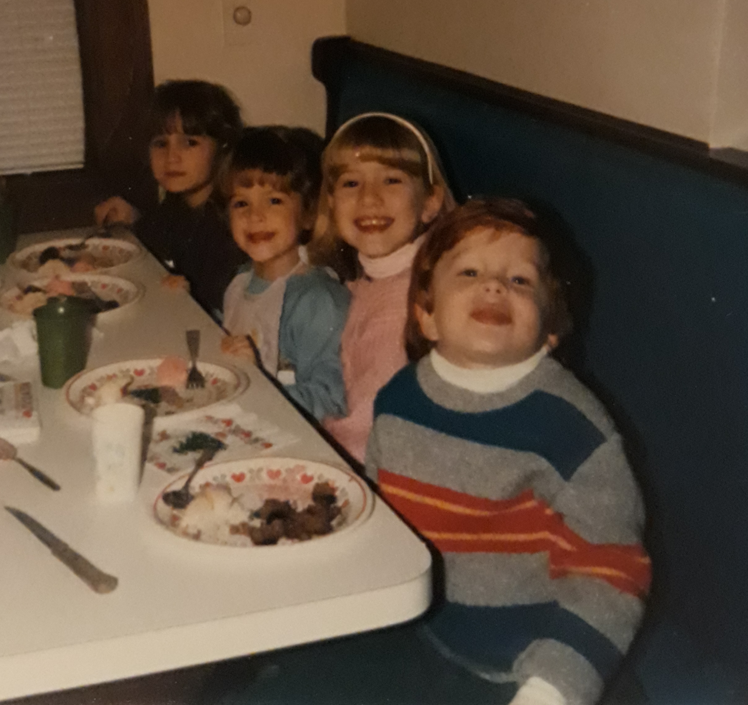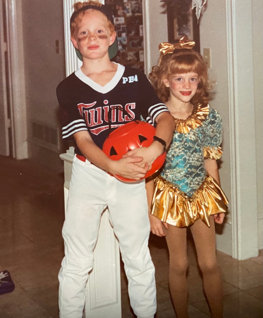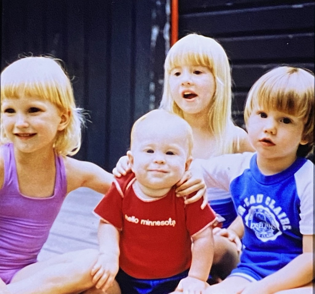 When Jeff’s family lived in Edina, and my family in northwestern Minnesota, I had the lucky pleasure of getting to spend a few days with them. We must have been preschool or early elementary-aged? I don’t know how I got to be the lucky one of my 3 sisters stay there, but I do remember I got to stay in Jeff’s room with him and we had a lot of fun together—making a mess of their basement, playing in their yard with his neighbor, and going out for ice cream.