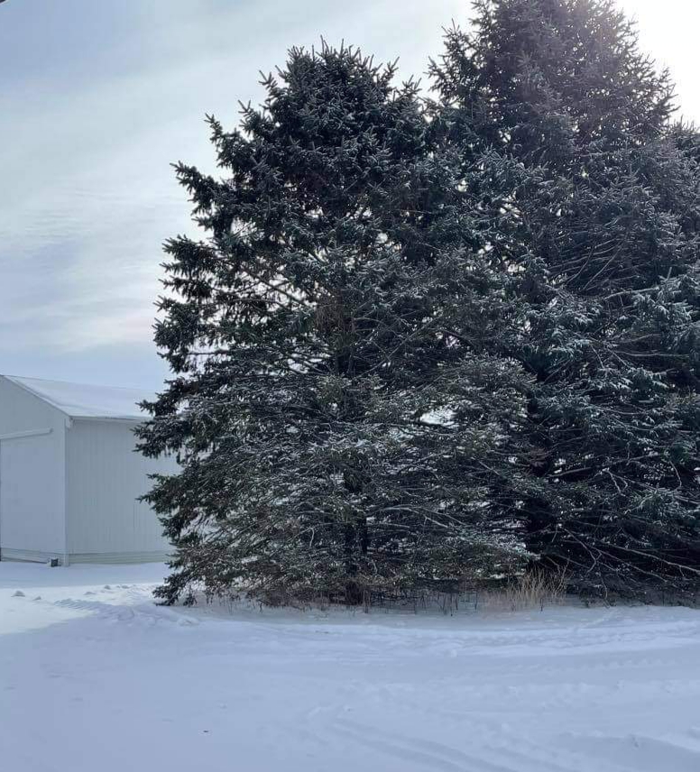 Some time after Jeff’s death, I received a letter from Ann, describing the planting of three blue spruce trees in Jeff’s memory at the farm in Sheffield, Iowa, where Jeff had spent many happy hours. Uncle Eldon’s family contributed one, Aunt Orva contributed another, and Harry & Ann, themselves, the third. They planted them in various locations that Jeff loved around the farm: by the bag swing and campfire; the treehouse and Zoomer (zipline); and, the largest, “in the exact place that Tom and all of his brothers used to play basketball, at the end of where a red corncrib stood.”