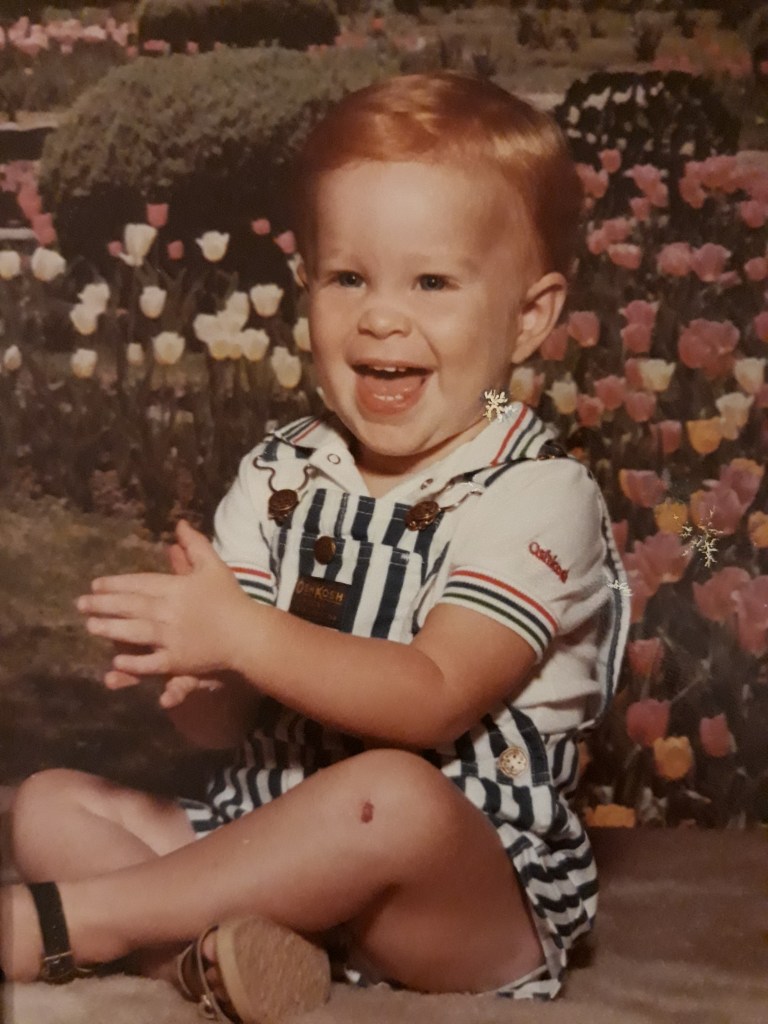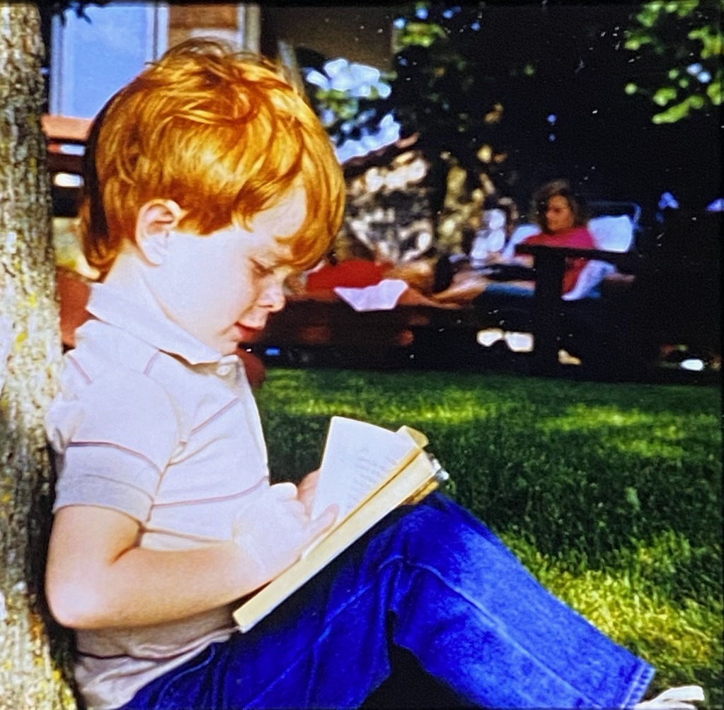 Sitting in church with Kris and Jeff and my husband’s brother, Jim. I felt Jim elbow me and with wide eyes nod towards a young 4-year-old Jeff, softly reading a book out loud.