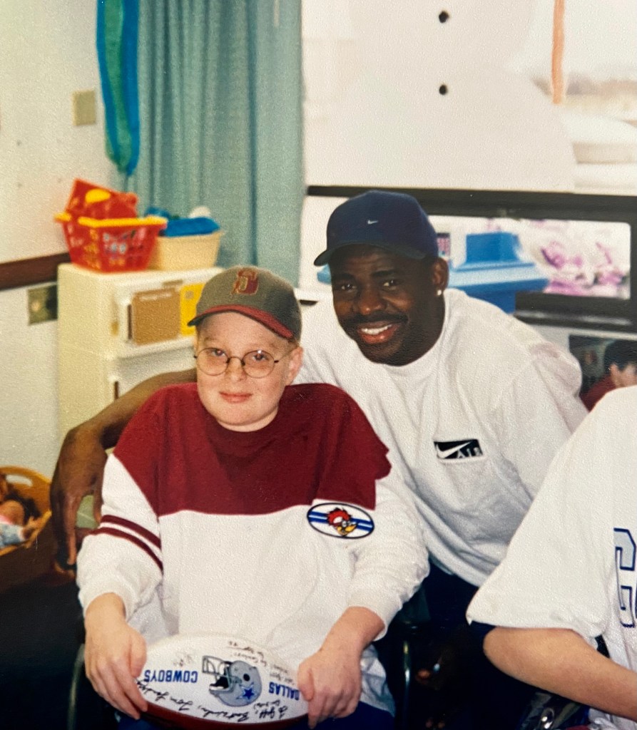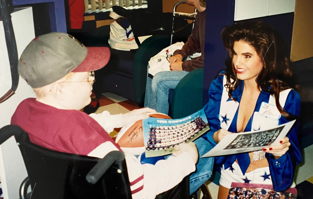 Thanks to him, the rest of us were finally able to start watching the Simpsons (a show previously forbidden by my parents for my sisters and me). That last Christmas that we all took a bus to Texas is still probably the best Christmas I’ve ever had. We were the talk of the neighborhood with the snowmen we built with the snow we brought from Minnesota! I think we even ran him up and down the streets in his wheelchair to see how fast we could go!
