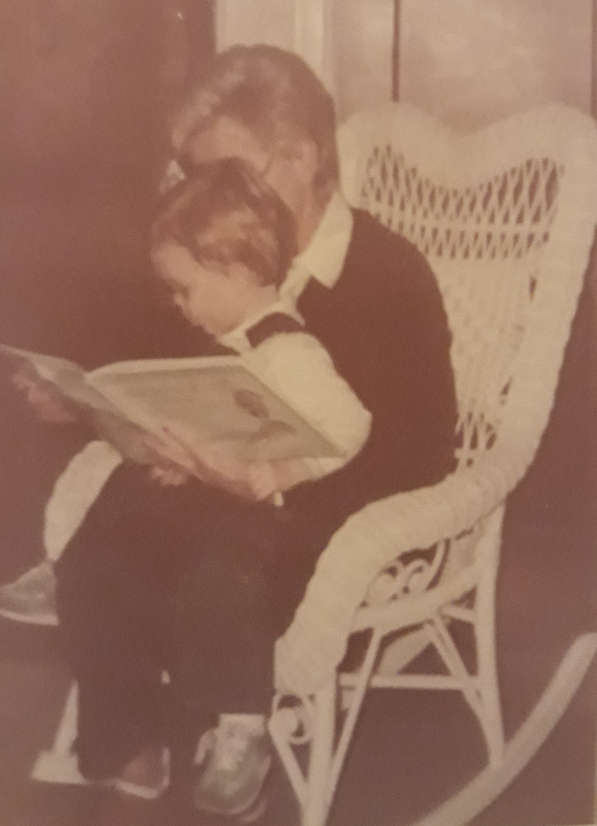 As I was looking for pictures of Jeff in a photo album of my mom’s, she said, “I remember there was a picture of me reading to Jeff in the rocking chair.”