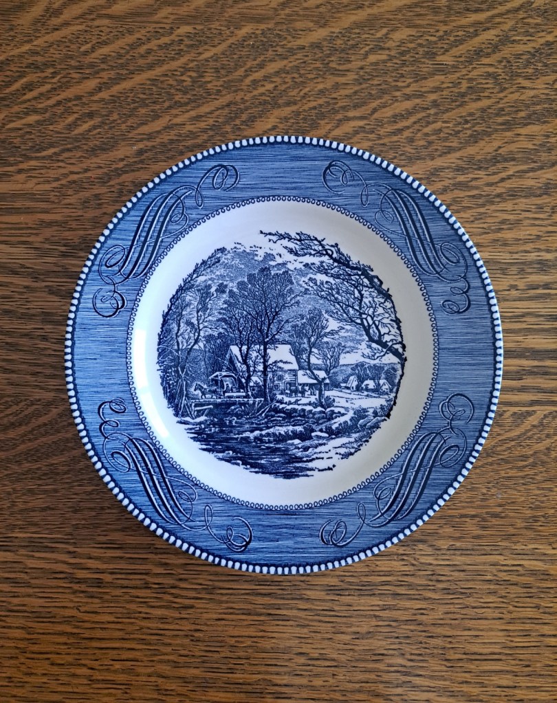 I remember those Currier & Ives dishes and helped set the table at my grandmother’s with them. Keep a few! So love to hear your stories.