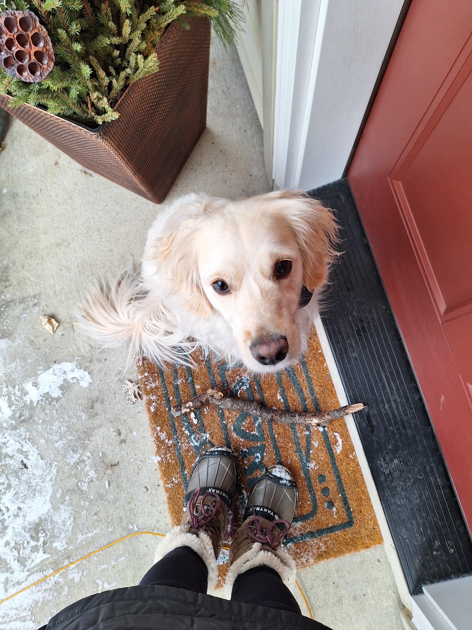 Be selective, and then be content with the stick you’ve chosen. I can only carry so much on my walk, so I tune out all the other sticks once I’ve picked one up. Check in with your master. Being off the leash means I can go where I want. I find it comforting after I’veContinue reading “Axel’s Year-End Sermon”